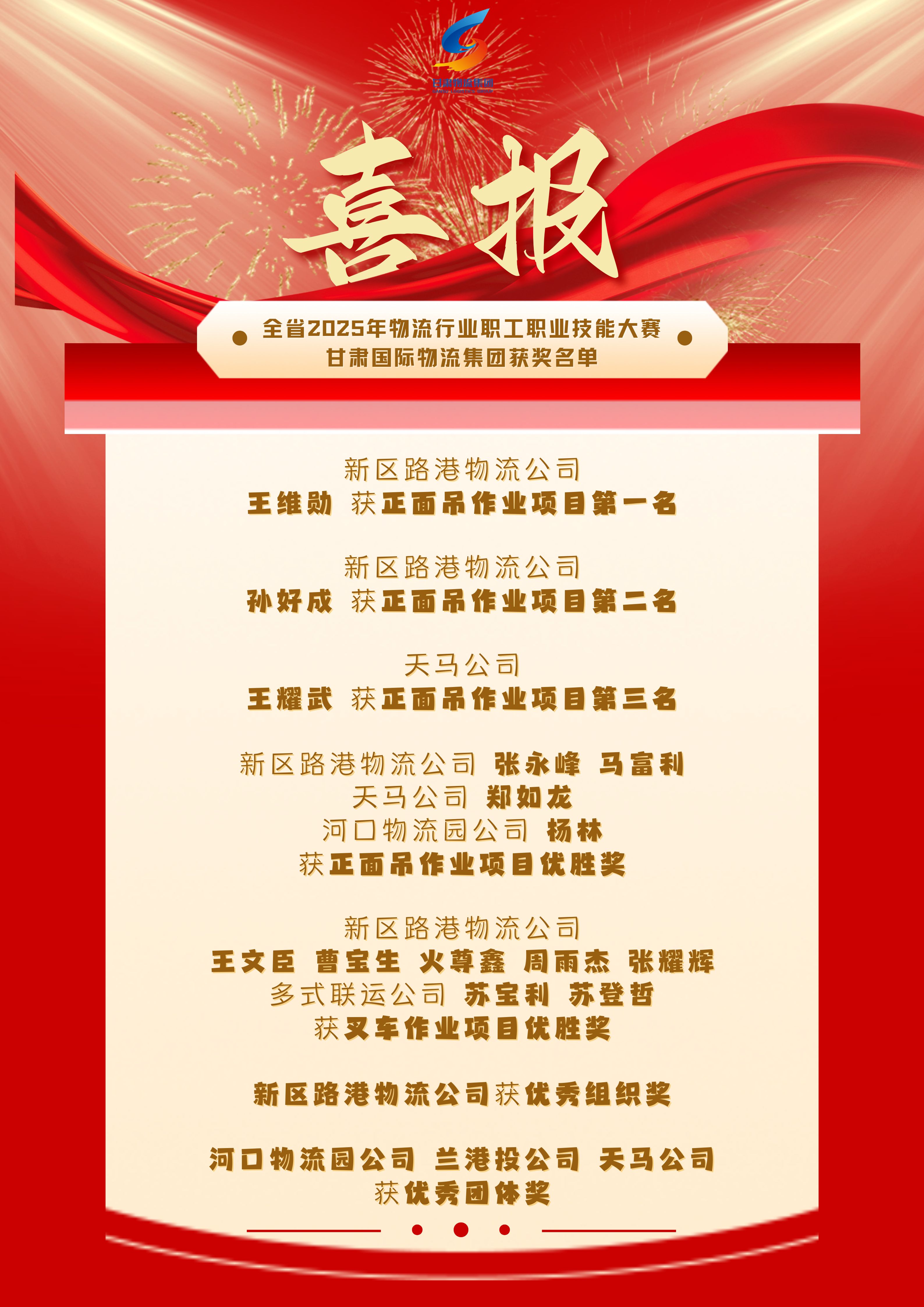 9月29日,甘肅省百萬職工勞動和技能競賽2025年甘肅省物流行業(yè)職工職業(yè)技能大賽閉幕式在新區(qū)路港物流公司舉行,甘肅國際物流集團(tuán)各企業(yè)職工積極參加,取得了出色成績。
